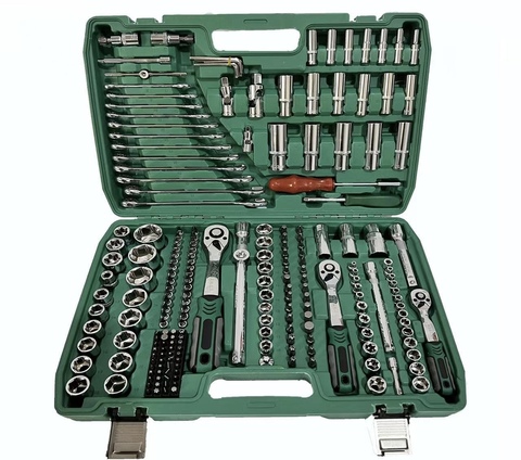 150-Piece Ratchet Socket Tool Set 1/4 "3/8" 1/2 "Drive Cr-Mo Aço SAE/Metric Sockets com Case para Reparação Auto & Manutenção